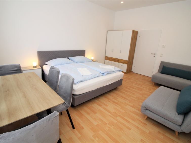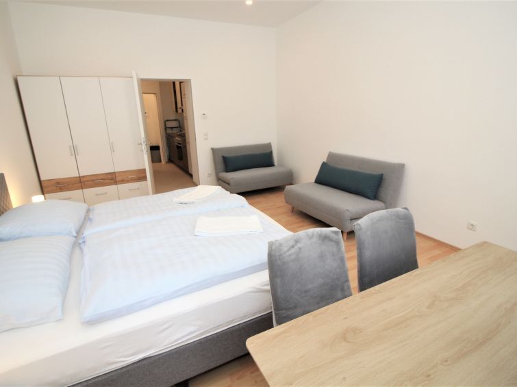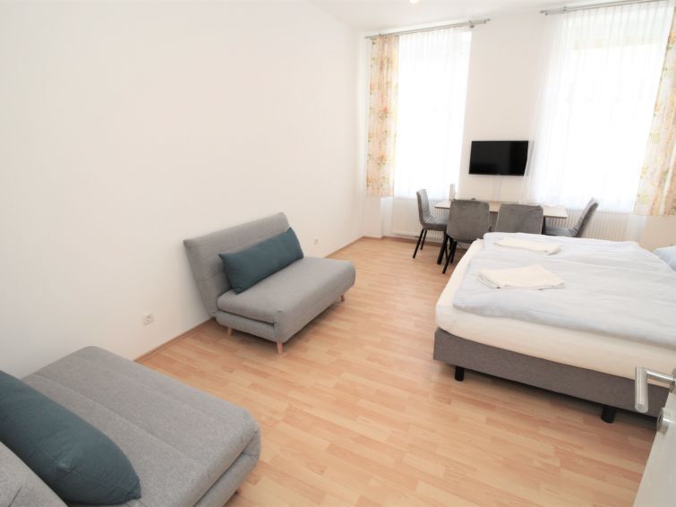 "Studio Meidling" studio 30 m2 au 2ème étage. Complètement rénové en 2022, aménagement très moderne: séjour/chambre à coucher avec 1 divan-lit double, 2 lits gigognes, table pour les repas, TV (câblée), chaînes de TV internationales et écran plat. Cuisine ouverte dans l'entrée (four, lave-vaisselle, 4 plaques vitrocéramiques, grille-pain, bouilloire électrique, congélateur, cafetière électrique) avec WC séparés et douche. Sol en bois. A disposition: sèche-cheveux. Internet (Connexion WIFI, gratuit). Veuillez noter: logement non-fumeur. Sans ascenseur.