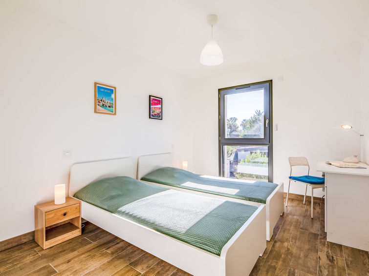 Huis 4-kamers 89 m2 op 2 verdiepingen. Ruim, modern en smaakvol ingericht: woon-/eetkamer 37 m2 met TV (Flatscreen TV), elektrische rolluiken. Uitgang naar het terras, naar de zitplaats in de tuin. Open keuken (oven, afwasmachine, 4 inductiekookplaten, broodrooster, waterkoker, magnetron, diepvriezer, elektrische koffiemachine, pads voor de koffiemachine (NESPRESSO) extra). Douche/WC. Bovenverdieping: 2 kamers 13 m2 met Kleedkamer, elke kamer heeft 1 2-pers bed (1 x 140 cm, lengte 200 cm). 1 kamer 13 m2 met Kleedkamer met 2 bedden (90 cm, lengte 200 cm). Badkamer, aparte WC. Elektrische verwarming. Groot terras, zithoek in de tuin. Terrasmeubelen, ligstoelen (2). Ter beschikking: wasmachine, haardroger. Internet (WiFi, extra). Parkeerplaats. Maximaal 1 huisdier/hond toegestaan. TV alleen FR. Rookmelders. Aanbod door een particulier volgens art. 155, IV van CGI. 12EVM8