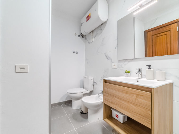 "Yubal IV", appartement 4-kamers 90 m2 op de 3e verdieping. Het objekt is geschikt voor 6 volwassenen. Ruim en licht, doelmatig en comfortabel ingericht: woon-/eetkamer met panoramavenster met Digitale TV en ventilator. Uitgang naar het balkon. 1 kamer met 1 2-pers bed (150 cm, lengte 190 cm), douche/bidet/WC, ventilator en boiler (60 liter). 1 kamer met 1 2-pers bed (1 x 150 cm, lengte 190 cm), ventilator. 1 kamer met 2 bedden (90 cm, lengte 190 cm), ventilator. Keuken (oven, 4 keramische glas kookplaten, broodrooster, waterkoker, magnetron, elektrische koffiemachine). Douche/bidet/WC. Boiler (60 liter). Geen verwarmingsmogelijkheid. Klein balkon. Balkonmeubilair. Uitzicht op de plaats. Ter beschikking: strijkijzer, haardroger. Internet (WiFi, gratis). Geschikt voor families woning aan de straatzijde. Niet rokers woning. Brandblusser. VV-38-4-00907079 // Reg. Nr.: ESFCTU0000380090000050320000000000000VV-38-4-00907079