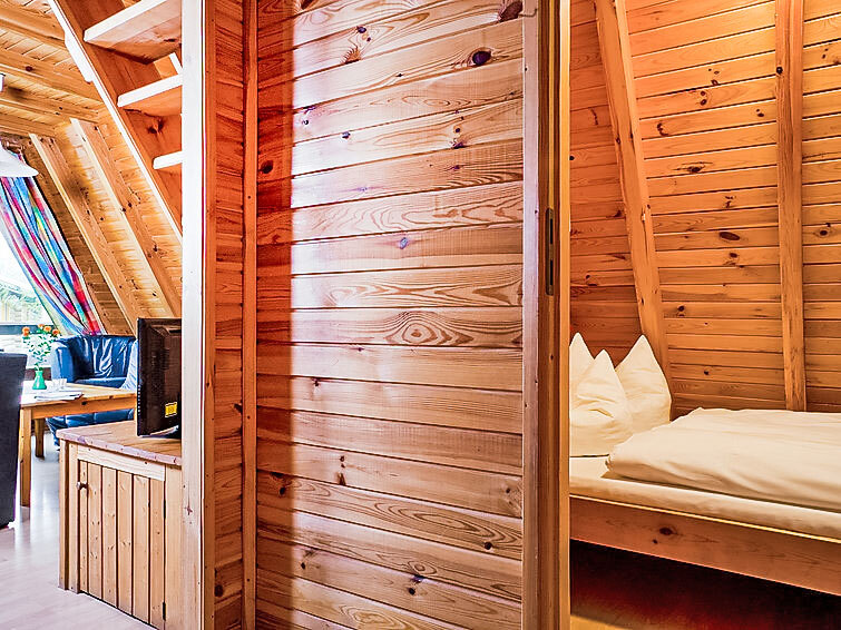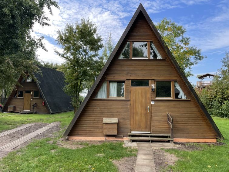 Huis 4-kamers 55 m2 op 2 verdiepingen, op de begane grond. Eenvoudig ingericht: woon-/eetkamer met afgeschuinde daken met Sat-TV en radio. 1 kamer met afgeschuinde daken met 1 2-pers bed (2 x 80 cm, lengte 200 cm). Kleine kookhoek (4-pits kookplaat, magnetron, elektrische koffiemachine). Douche/WC. Bovenverdieping: (steile trap), 2 kamers met afgeschuinde daken, elke kamer heeft 2 bedden. Gas-verwarming. Terras overdekt. Terrasmeubelen. Ter beschikking: kinderstoel. Internet (WiFi, gratis). Parkeerplaats bij het huis. Rookvrij huis. Maximaal 2 huisdieren/honden toegestaan. Rookmelders. Houten huis met aflopend dak tot aan grond, toegang tot de bovenverdieping via een smalle lepeltrap. Roken in het huis is verboden.
