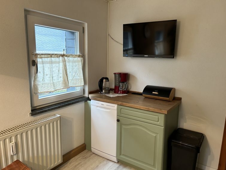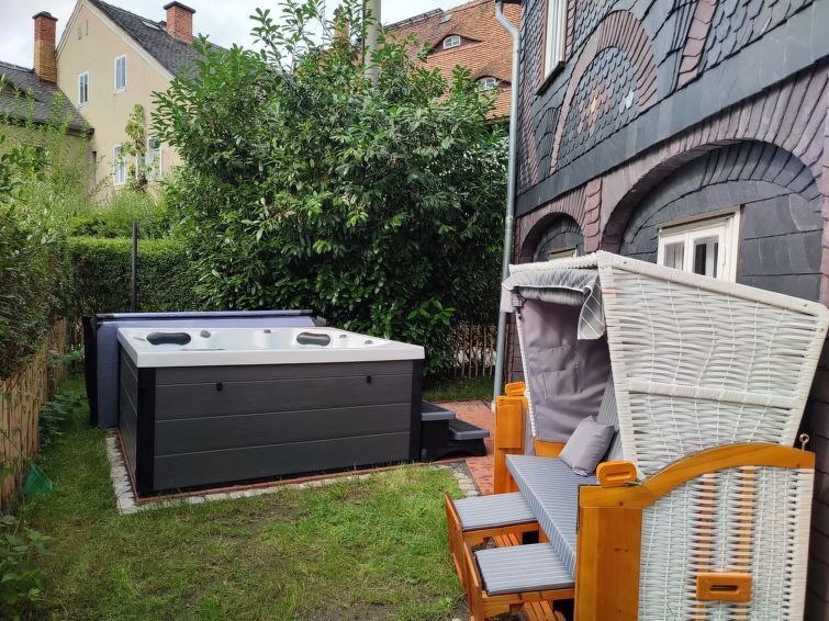 Huis 7-kamers 180 m2 op 3 verdiepingen. Gezellig en met veel hout ingericht: 1 kamer 36 m2 met 1 2-pers bed (180 cm, lengte 200 cm), eettafel en Kabel-TV (Flatscreen TV). Kookhoek (oven, afwasmachine, 4 keramische glas kookplaten, broodrooster, waterkoker, elektrische koffiemachine). Douche, aparte WC. Bovenverdieping: (steile trap) woon-/slaapkamer met 1 2-pers divanbed en Kabel-TV (Flatscreen TV), DVD en DVD´s beschikbaar. 1 kamer met 1 2-pers bed (180 cm, lengte 200 cm), Kabel-TV (Flatscreen TV). Woon-/eetkamer met 1 divanbed, zwedenkachel, eettafel, kookhoek en Kabel-TV (Flatscreen TV). Keuken (oven, afwasmachine, 4 keramische glas kookplaten, broodrooster, waterkoker, elektrische koffiemachine) met eettafel en Kabel-TV (Flatscreen TV). 2 bad/WC's, dubbele wastafels. Zolderverdieping: (steile trap) met afgeschuinde daken, 1 open kamer met 1 2-pers bed (140 cm, lengte 200 cm), 1 2-pers bed (180 cm, lengte 200 cm), Kabel-TV (Flatscreen TV). 1 kamer met 1 bed (80 cm, lengte 190 cm). Hydro massage bad. Gas-verwarming. Zithoek in de tuin, gazon. Terrasmeubelen, barbecue. Ter beschikking: wasmachine, sauna, haardroger. Internet (Internet (WiFi), gratis). Parkeerplaats (3 Auto's). Rookvrij huis. Maximaal 1 huisdier/hond toegestaan. Rookmelders.