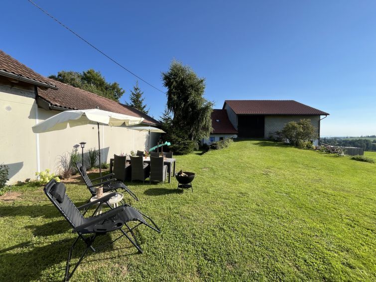 Höchenschwand: Mooi eengezinswoning "Gustis Hüsli", van 2 verdiepingen, vrijstaand, omgeven door weiden en velden. In de wijk Attlisberg, 1.5 km van het centrum van Höchenschwand, aan de rand van de plaats, in het district Südlicher Schwarzwald, rustige, zonnige ligging. Voor alleengebruik: terrein 800 m2, ligweide. In het huis: bergruimte voor fietsen. Parkeerplaats (voor 2 auto's) bij het huis. Winkel 2 km, levensmiddelenwinkel 2 km, supermarkt 6 km, restaurant 2 km, café 2 km, bushalte "Höchenschwand" 1.5 km, treinstation "Seebrugg (Schluchsee)" 15 km, openluchtzwembad 5 km, meer Schluchsee 15 km. Wandelroutes 1 m vanaf het huis, fietspad 10 m, langlaufloipe 2 km. Attracties in de buurt: Dom St. Blasien 10 km, Rothaus-Zäpfle-Turm 3.5 km, Wolfssteig 1.5 km, Sauriermuseum Frick (CH) 38 km, Freiburg 66 km, Schaffhausen Rheinfall 55 km. Bekende skigebieden kunnen gemakkelijk worden bereikt: Feldberg / Hochschwarzwald 32 km. Bekende meren kunnen gemakkelijk worden bereikt: Schluchsee 15 km, Titisee 33 km. Wandelgebied Schwarzwald, Hotzenwald. De eigenaar accepteert geen jeugdgroepen.