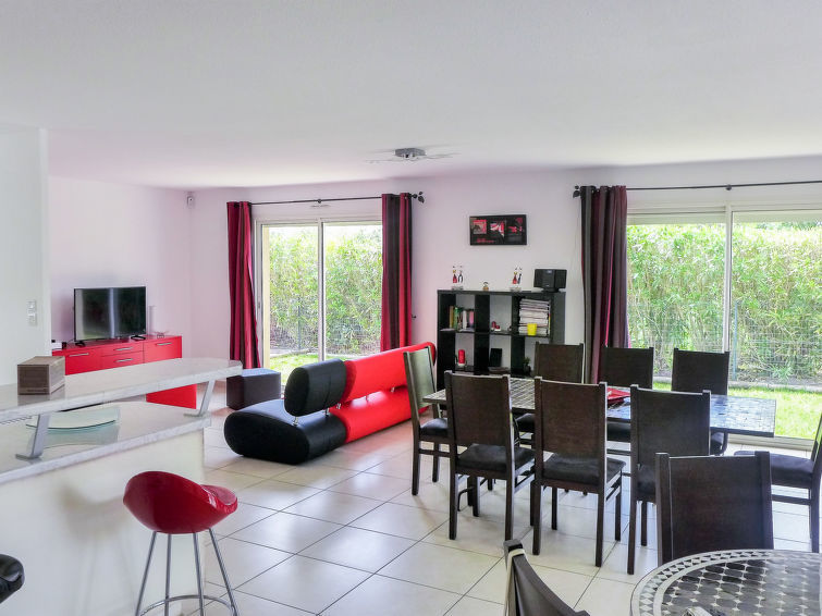 Canet en Roussillon: Mooi villa "Les Villas de l'Etang", bouwjaar 2006. In de wijk les Hauts de Canet, aan de rand van de plaats, 4 km van zee, 4 km van het strand, aan een doodlopende weg. Voor alleengebruik: tuin 500 m2 (omheind) planten, openluchtzwembad hoekig, verwarmd, geen inkijk (9 x 4 m, 160 cm diepte, seizoensgebonden beschikbaarheid: 01.Jun. - 30.Sep.) met trap en oprolbaar afdekscherm. Buitendouche. In het huis: air-conditioning, alarmsysteem. Winkel, levensmiddelenwinkel 850 m, supermarkt 2 km, winkelcentrum 6 km, restaurant, bakkerij 850 m, bushalte 150 m, treinstation "Perpignan" 12 km, zandstrand 4 km, park "Aqualand St Cyprien" 10 km, duikschool 18 km, openluchtzwembad 1 km, overdekt zwembad 1 km, meer Etang de Canet 2 km. Jachthaven 3 km, golfterrein (18 holes) 8 km, zeilschool 3 km, midgetgolf 5 km. Attracties in de buurt: Perpignan 12 km, Collioure 25 km, Banyuls 37 km, Espagne 35 km, Andorre 180 km, Barcelone 200 km. Bekende meren kunnen gemakkelijk worden bereikt: Lac de Villeneuve de la Raho 19 km, lac de St Jean Pla de Corts 39 km, Gorges du Gouleyrous 42 km. Wandelgebied Abbaye de St Martin du Canigou 70 km, Pic du Canigou 77 km, Lac des Bouillouses 105 km.