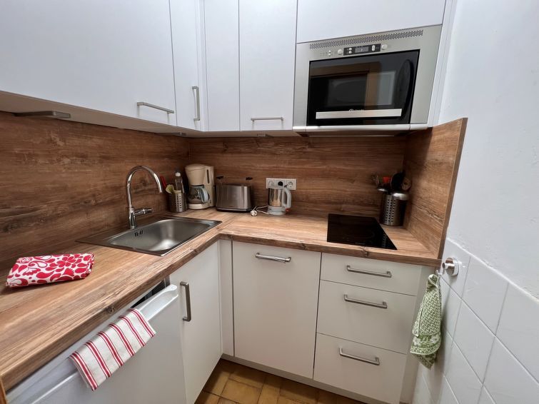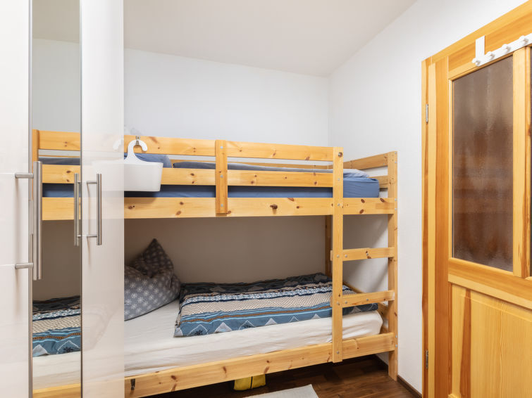 "Appartement Andrea", appartement 2-kamers 39 m2 op de 4e verdieping. Licht, mooi en gezellig ingericht: hal. Woon-/slaapkamer met 1 2-pers divanbed en Sat-TV (Flatscreen TV), radio. Uitgang naar het balkon. 1 kamer met 2 x 2 stapelbedden (90 cm, lengte 190 cm). Kleine keuken (afwasmachine, 2 keramische glas kookplaten, broodrooster, waterkoker, elektrische koffiemachine, combimagnetron). Douche/WC. Balkon. Balkonmeubilair. Zeer mooi uitzicht op de bergen en het landschap. Ter beschikking: Internet (WiFi, gratis). Parkeerplaats (1 Auto). Geschikt voor families. Niet rokers woning. 1 huisdier/hond toegestaan. Rookmelders, brandblusser. Pas gerenoveerde badkamer! 50415-006726-2020