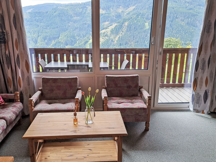 "Top A", appartement 1-kamer 39 m2, op de begane grond. Licht, gedeeltelijk gerenoveerd in 2024, gezellig ingericht: hal. Woonkamer met 2 kastbedden, eettafel en Kabel-TV (Flatscreen TV). Uitgang naar het balkon. 1 kamer met 2 bedden. Kleine keuken (3-pits kookplaat, broodrooster, diepvriezer, elektrische koffiemachine). Douche/WC. Verwarming. Balkon 10 m2. Balkonmeubilair. Zeer mooi panoramazicht op de bergen en het landschap. Ter beschikking: haardroger. Parkeerplaats. Niet rokers woning, rookvrij huis. Mooie ligging, ideaal startpunt om de wereld van Ski Amadé te verkennen. 50415-006730-2020